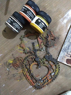 DecoArt paint: Quinacridone Gold, Black, Desert Turquoise